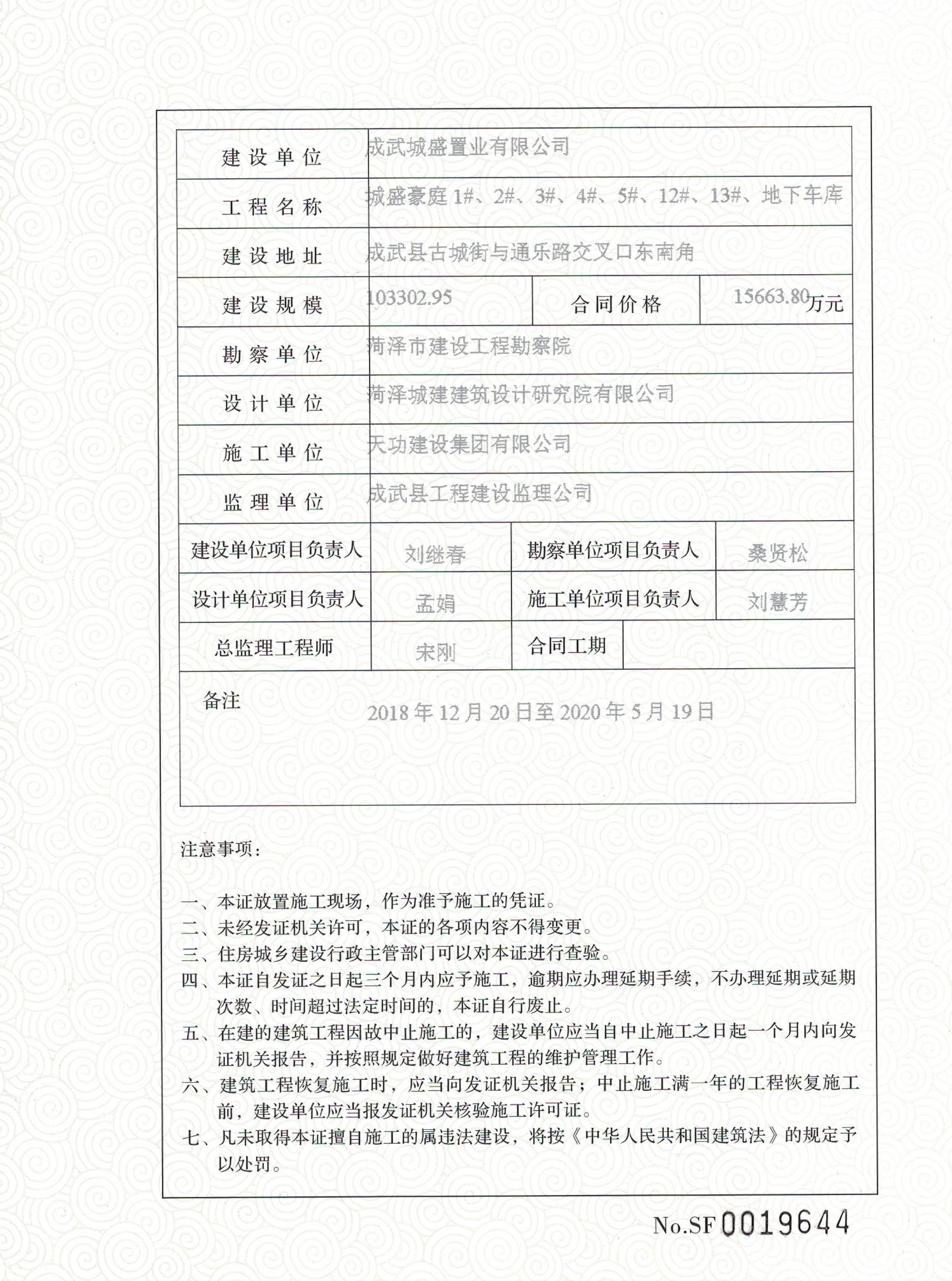 内容概述: | 城盛豪庭一期建筑工程施工许可证核发 |