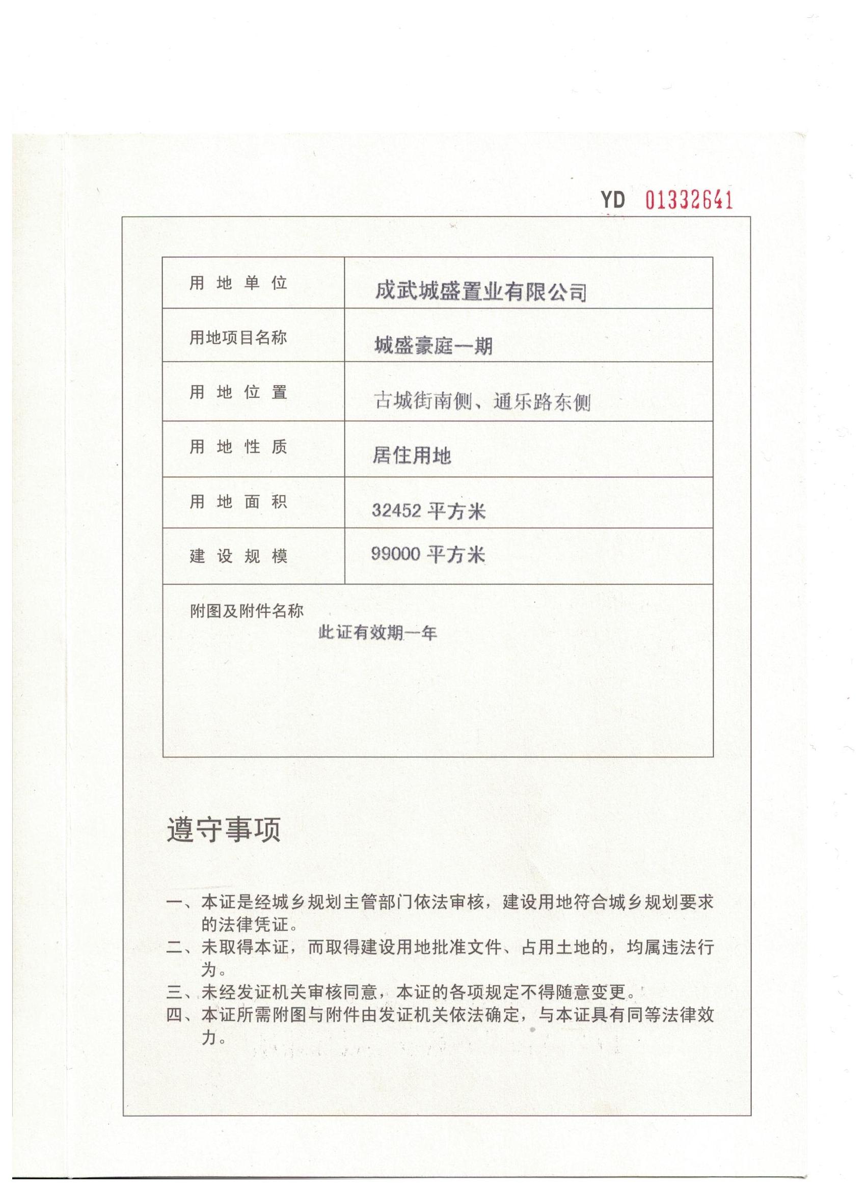 城盛豪庭一期建设用地规划许可证核发