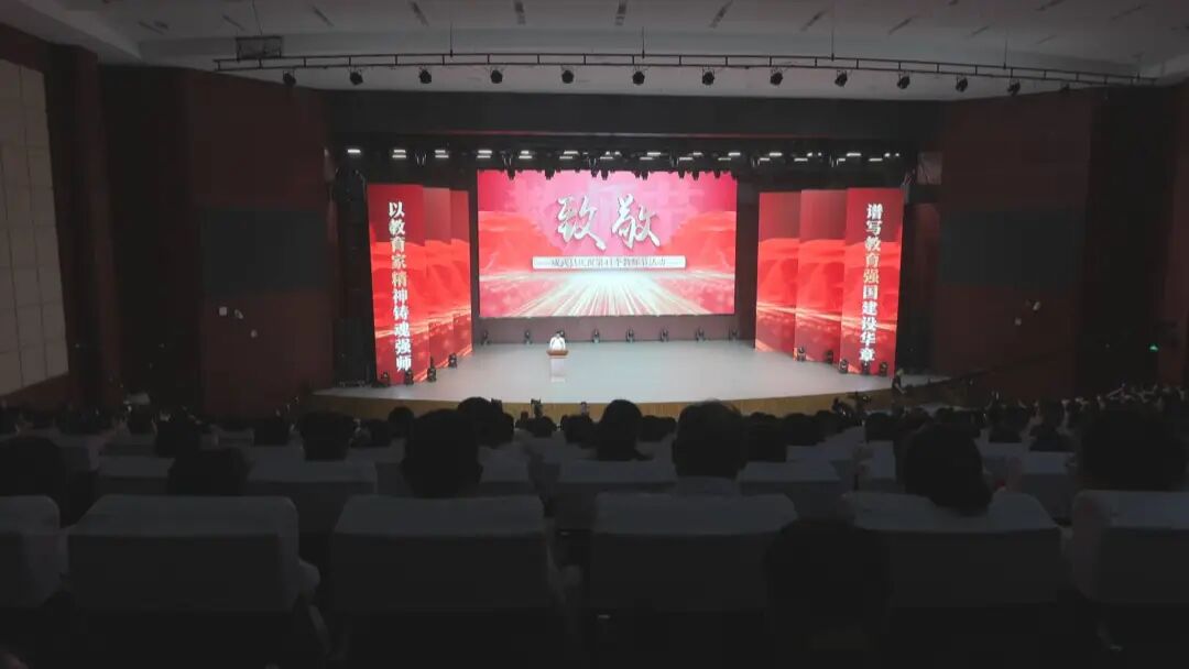 会上,部分优秀教师代表进行了发言。与会人员一起观看了专题片《答卷》和文艺演出。