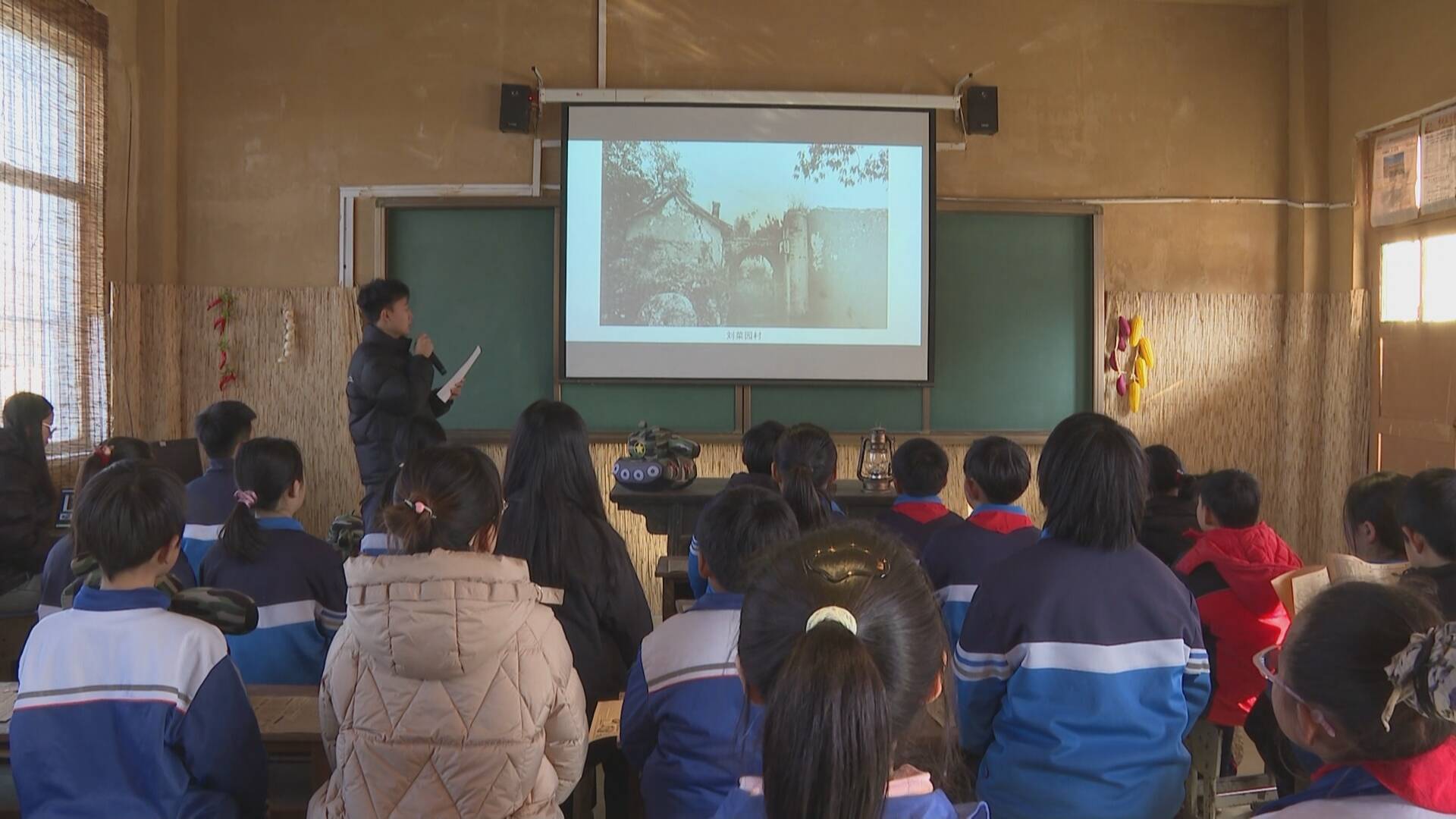 在绘有珍贵历史图片与文字记载的文化墙前,张楼镇文化站工作人员结合“磨盘砸坦克”等家乡红色革命故事,为学生们生动讲解先辈们的英勇事迹。一段段厚重的历史,通过朴实的语言与详细的图文解说,鲜活呈现,同学们凝神倾听,深受触动。
