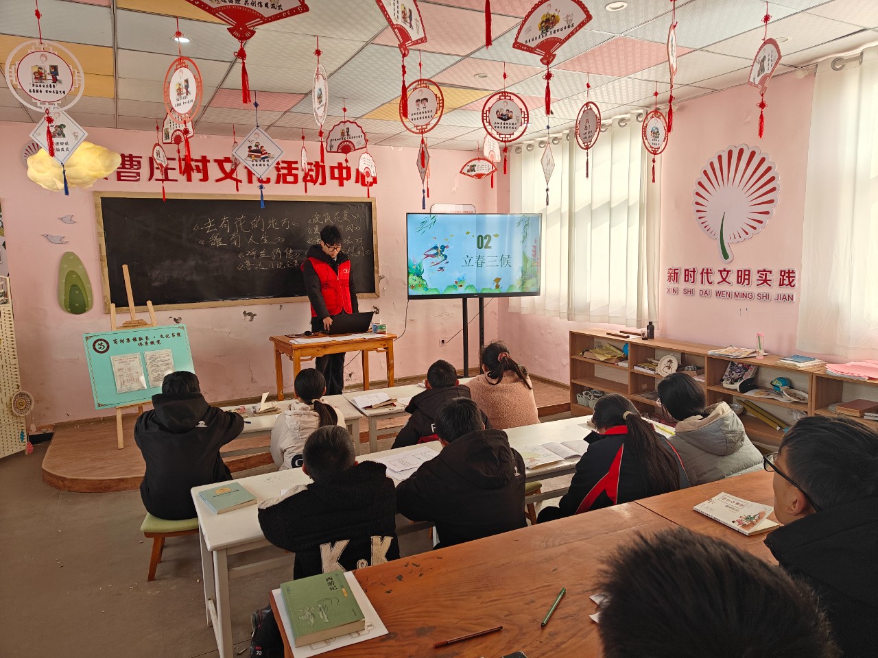 聘书的热度还未散去,新上任的合伙人们便立刻投入了角色,精心策划并主导了一堂生动的“立春习俗艺术课”。课堂从“立春”的古老智慧讲起,这些年轻的合伙人用亲切的乡音和鲜活的例子,为孩子们细说“咬春”、“打春”的习俗趣闻,将书本上的节气知识化为了可触可感的家乡故事。孩子们睁大眼睛,听得入神,仿佛跟随合伙人的描述,听见了春天悄悄走近的脚步声。