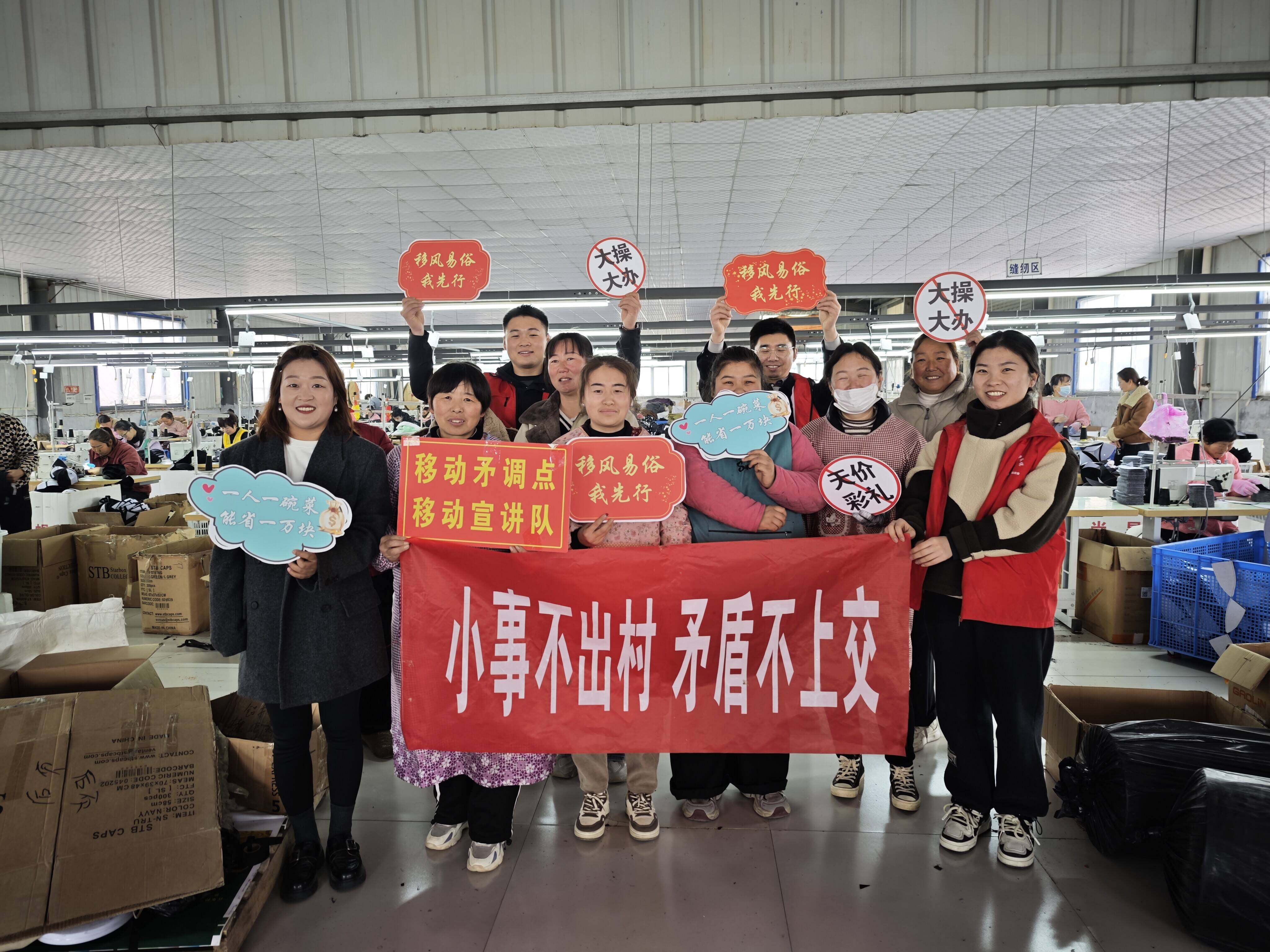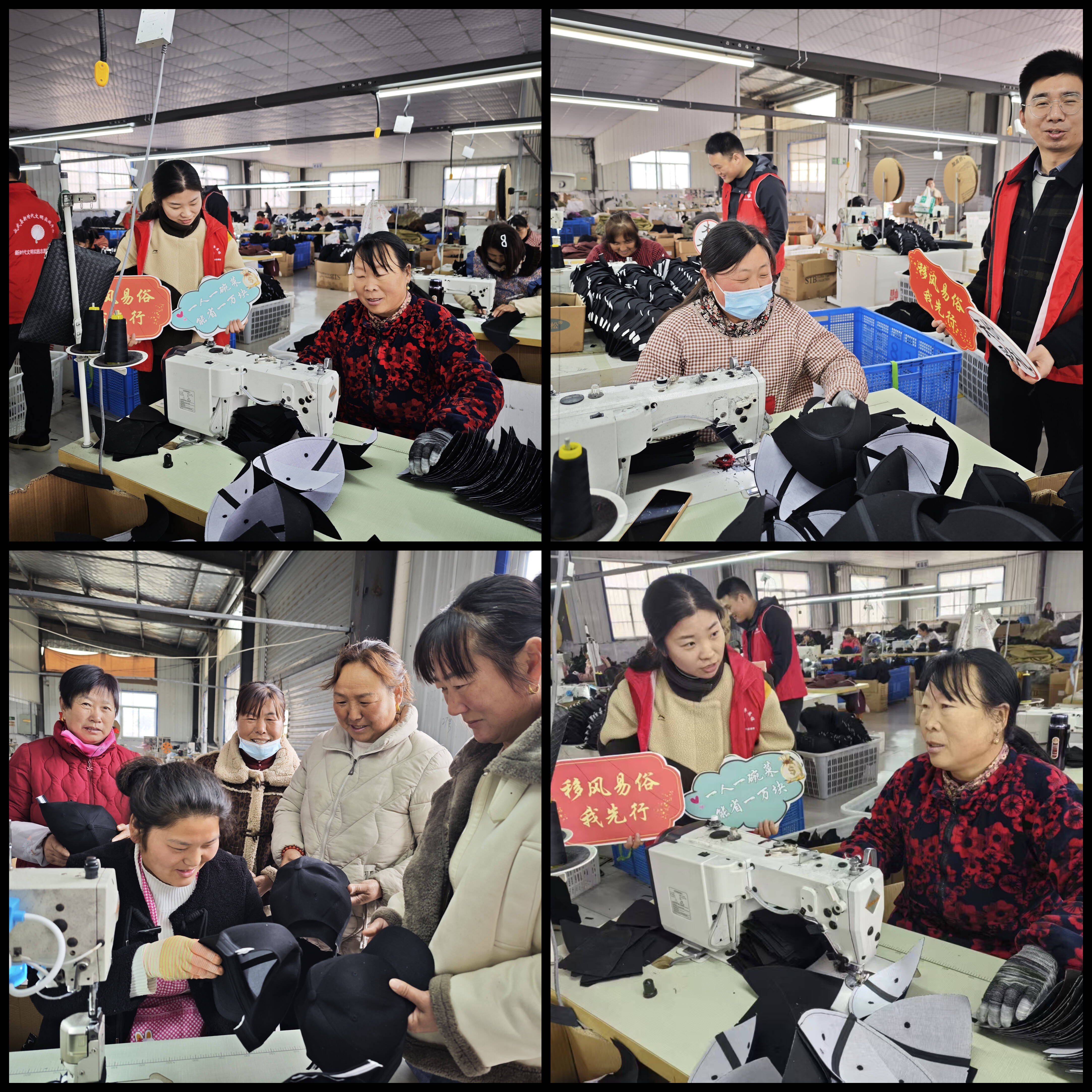 张阁村共富工坊是南鲁集镇党建引领乡村振兴的重要成果之一,主要吸纳周边村庄村民从事衣帽加工工作,目前共有50余名村民在此就业。这些村民家中孩子大多到了适婚年龄,是移风易俗宣传的重点对象。宣传队抓住这一有利时机,将移风易俗宣传与共富工坊日常生产相结合,用通俗易懂的语言、鲜活生动的事例,向工坊村民们讲解高价彩礼、大操大办、厚葬薄养等陈规陋习的危害,倡导婚事新办、丧事简办、孝老爱亲、勤俭节约等文明新风尚。
