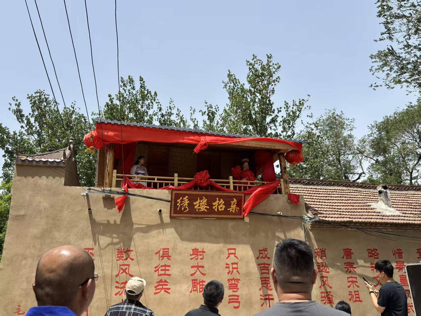 而绣楼招亲活动更是将现场气氛推向高潮。古色古香的绣楼前都在期待着这场传统婚嫁仪式的上演。随着悠扬的古乐响起,“新娘”身着凤冠霞帔,将手中的绣球高高抛起,瞬间引发台下一阵欢呼,大家沉浸式体验了一把古代婚嫁的浪漫与庄重。