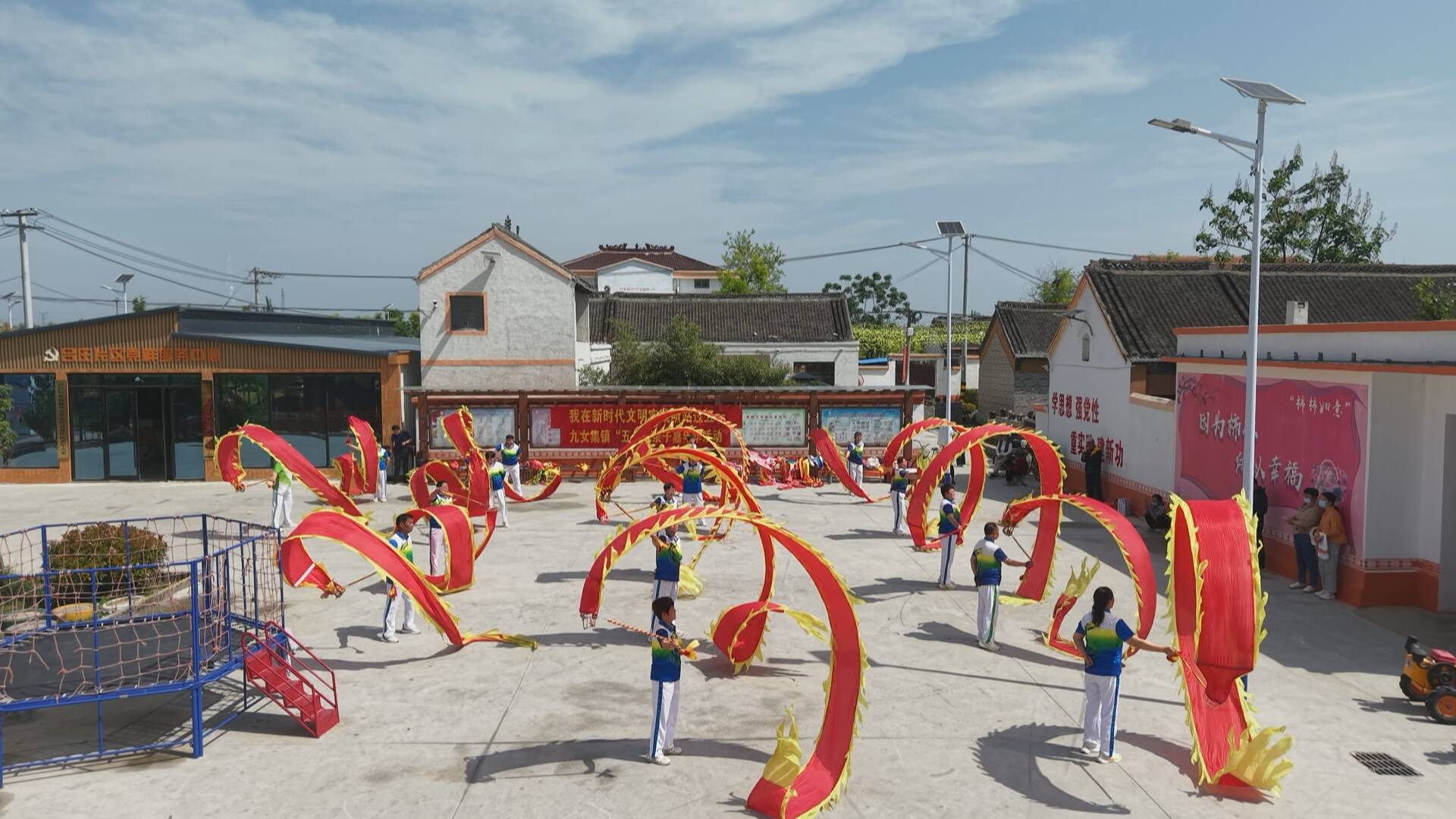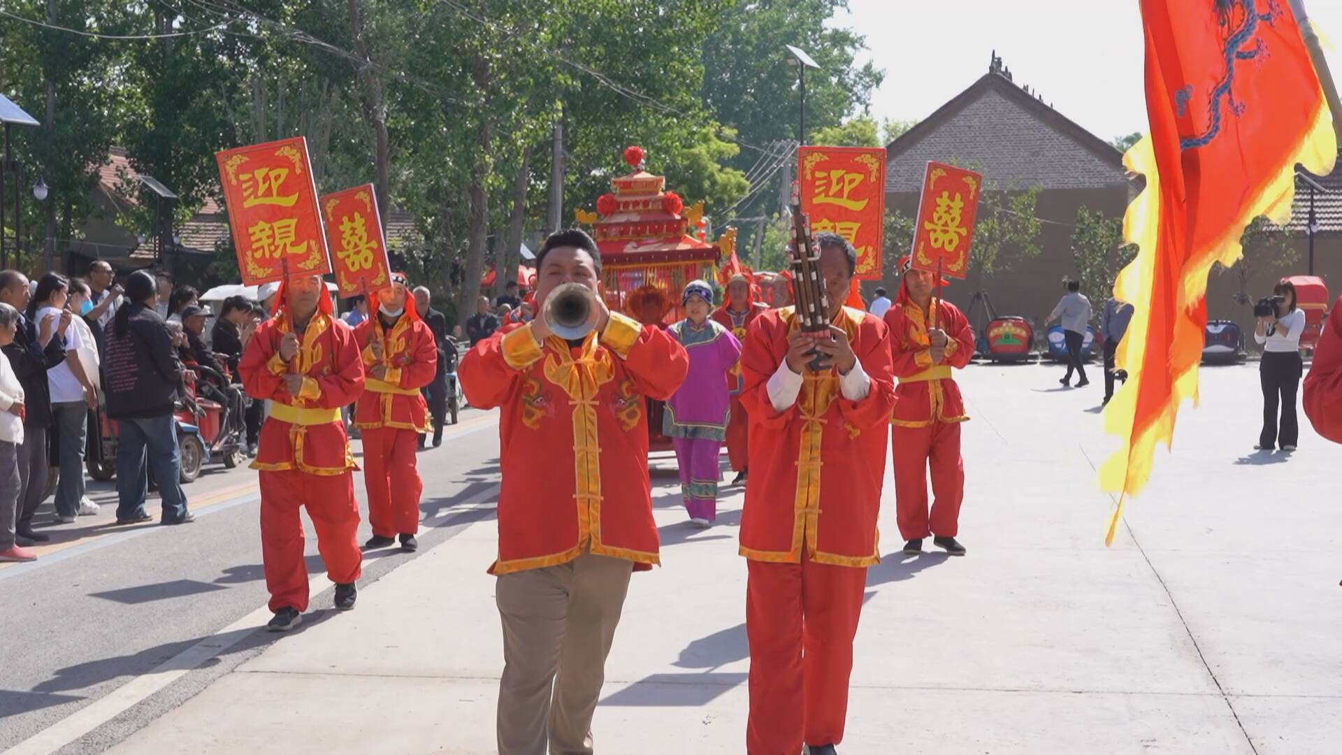 在汶上集镇洪楼村,独具特色的民俗表演引得游客纷纷驻足观看。