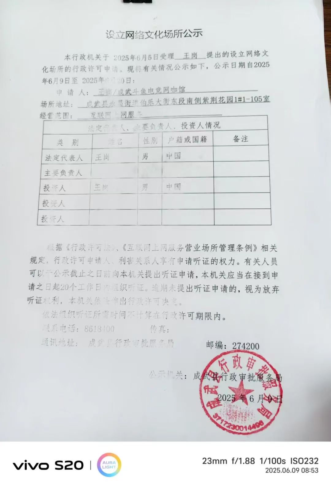 【公共文化服务】成武县行政审批服务局2025年公共文化领域行政许可信息公示(网络文化场所)